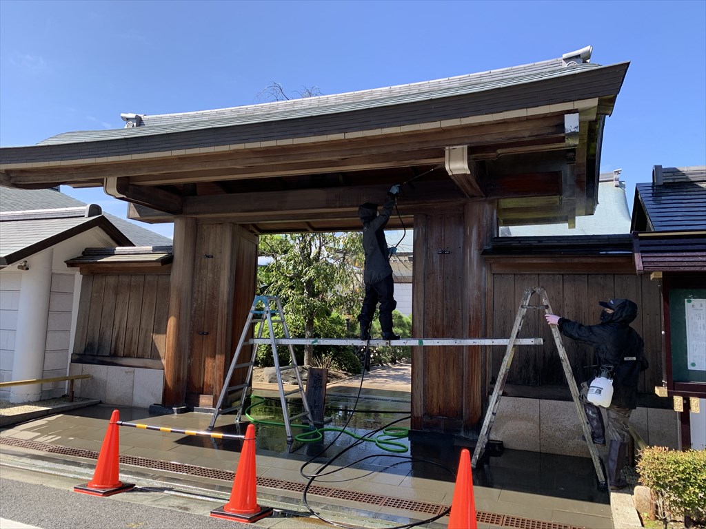 これまで内装のリフォームを手がけていたお寺から、お寺の門扉の洗浄と塗装のご依頼があり始まったプロジェクト。