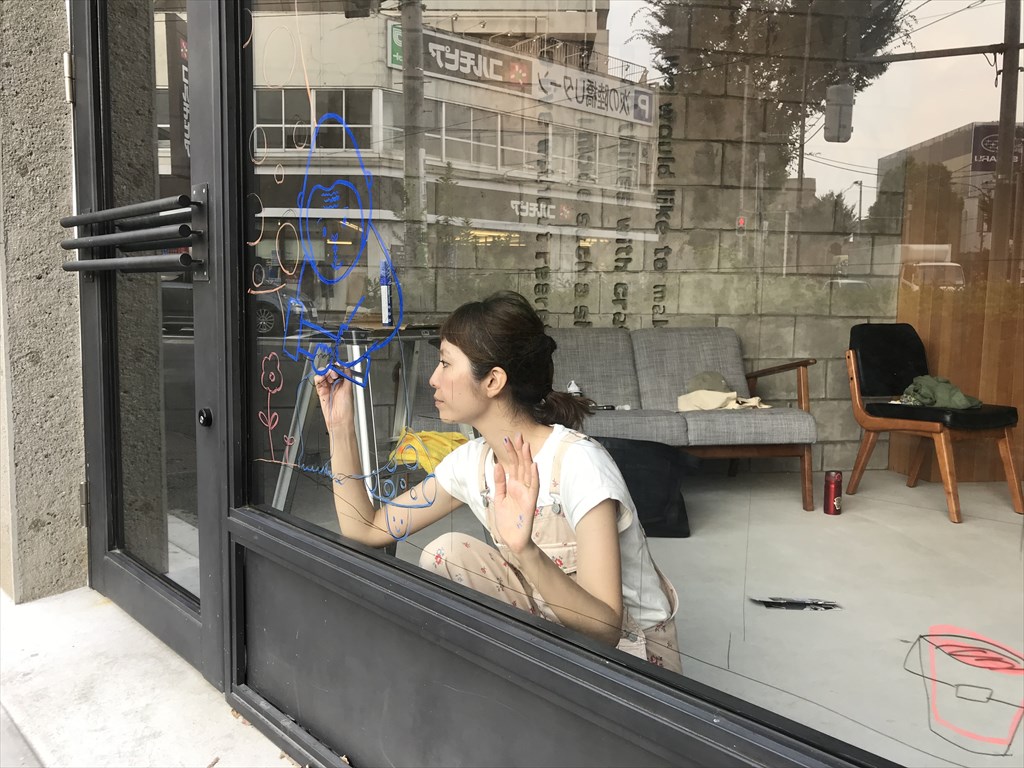 歩道側に大きなガラスウィンドウを配し、プロのイラストレーターによる絵で楽しさを演出しました。